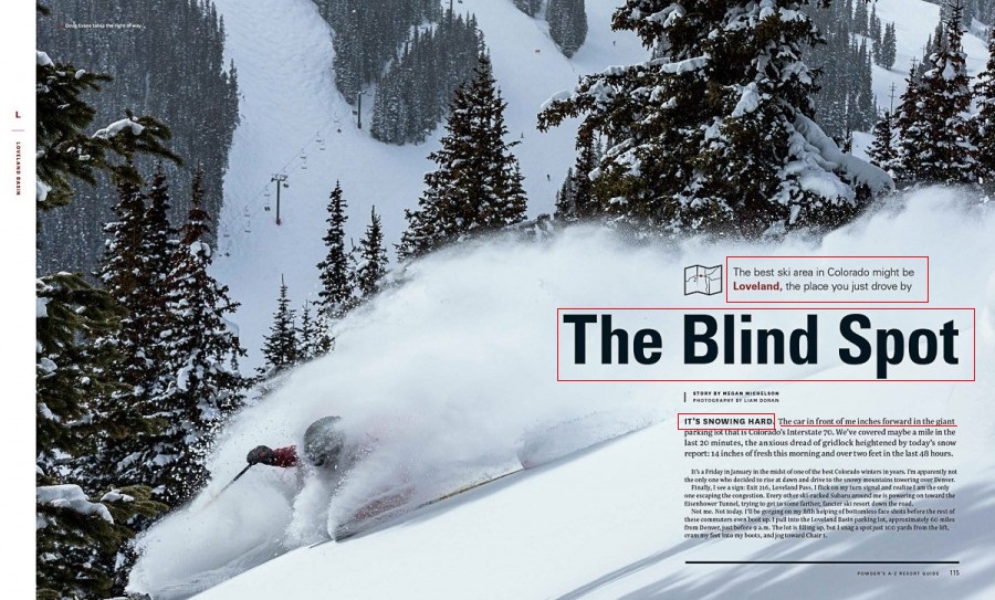 The leading lines in the magazine’s photograph naturally attracts to skiers and made the subject of outdoor sports in a short moment. The depth of field in this photo was used to vary the focus of the trees on the slopes of the front snow covered mountains and the trees of the back mountains. Through the distance from the object, the focus is on the tree in front of it, making it look clear. I tried to show different feelings of leading lines through my pictures.